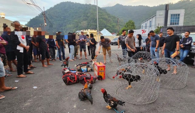Sebanyak 41 orang diamankan saat penggerebekan tersebut. Dari lokasi, polisi juga mengamankan sebanyak 20 ekor ayam, uang tunai jutaan rupiah, heandphone, kendaraan roda enam, roda empat roda tiga (Bentor) dan pula roda dua.